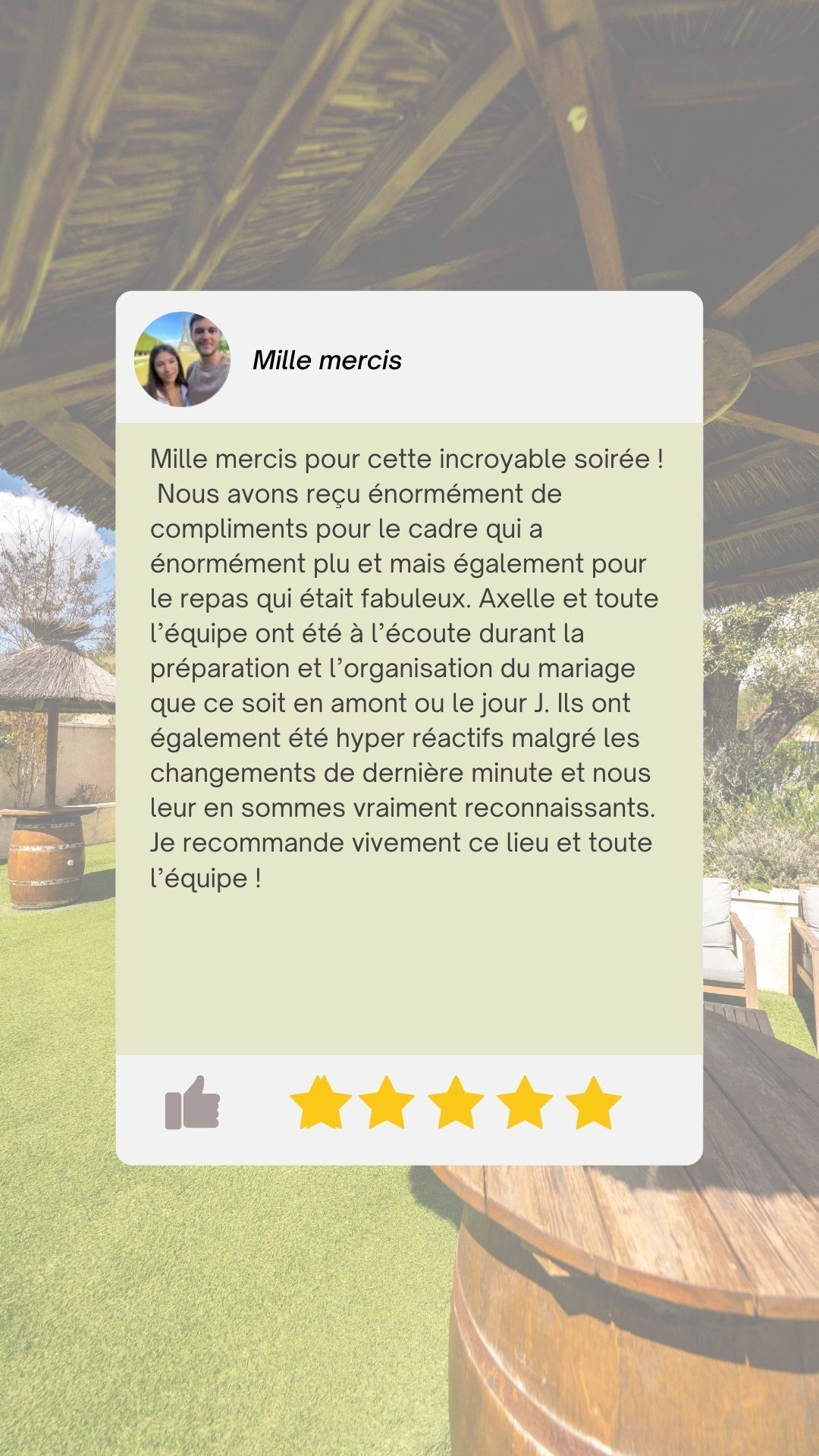 Il suo esterno boscoso, accompagnato dalle sue capanne, sarà il luogo ideale per accogliervi durante il vostro cocktail party o la vostra cerimonia secolare per creare ricordi indimenticabili.