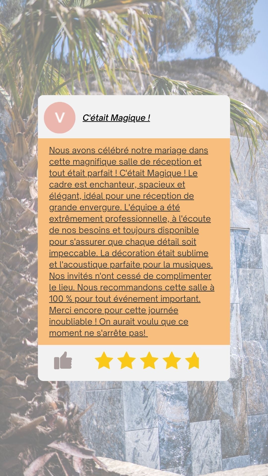 Pour un mariage inoubliable dans les Bouches-du-Rhône, la Villa Lovina à Peypin vous propose une salle événementielle d'exception. Son atmosphère raffinée et son cadre luxueux offrent l'endroit idéal pour célébrer votre union et créer des souvenirs impérissables entourés de vos proches.